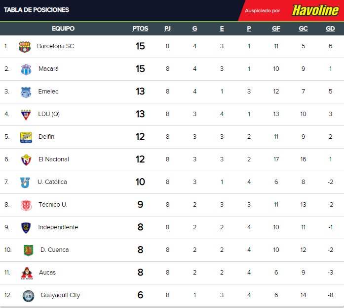 El Universo در توییتر Asi Quedo La Tabla De Posiciones Al Cierre De La Fecha 8 De La Segunda Etapa Del Campeonato Nacional En La Serie A Https T Co Yvfuakswiy Https T Co Dsd66urvdt