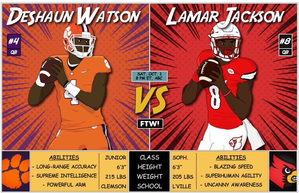 Nfl On Espn Ar Twitter 2016 Saw Lamar Jackson And Deshaun Watson Stuff The Stat Sheet In A Top 5 Louisville Clemson Battle Sunday They Ll Meet Again Https T Co Btqutm6bln